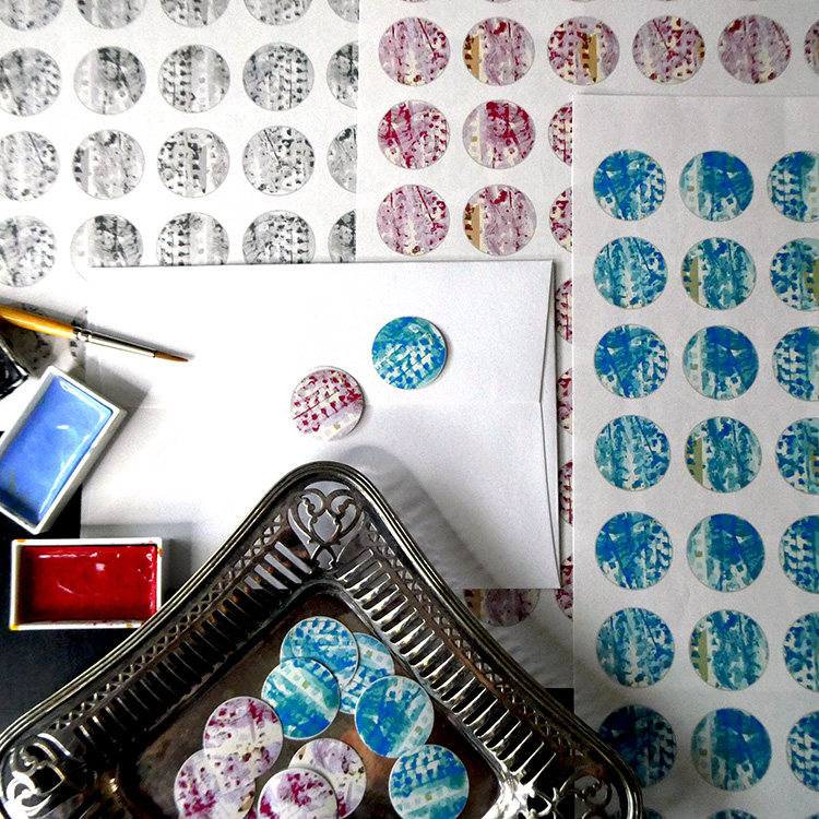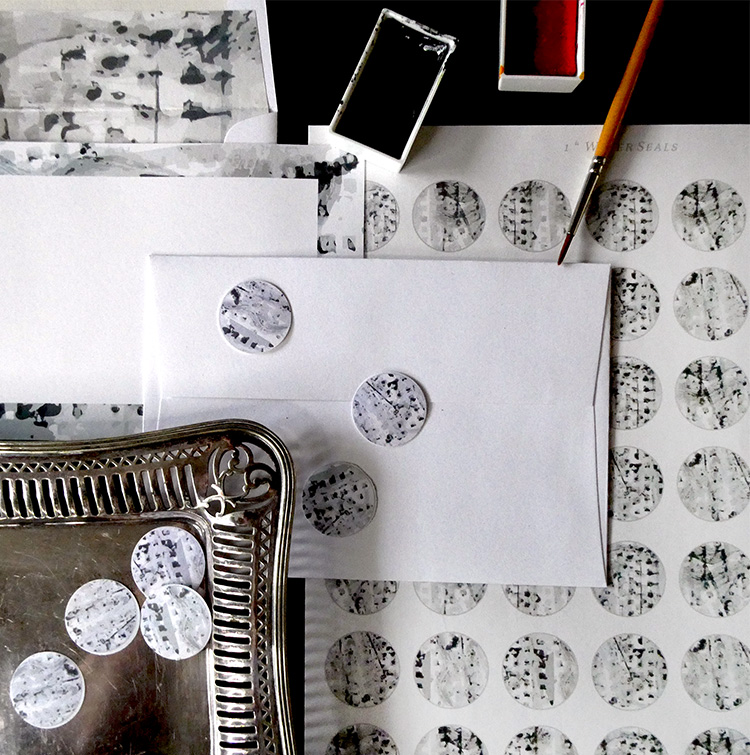 Mark making; to document, to understand, to explore, to play. And so we bring you this abstract watercolor exploring texture on wafer seals. These coordinate with matching note card sets and half sheet stationery sets. Available in three color families: Gypsy Red, Cerulean Blue, and Charcoal Grey.