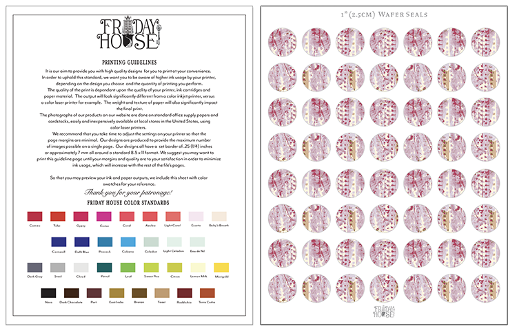 Bohemian Pattern 1" Round Wafer Seals Gypsy Red