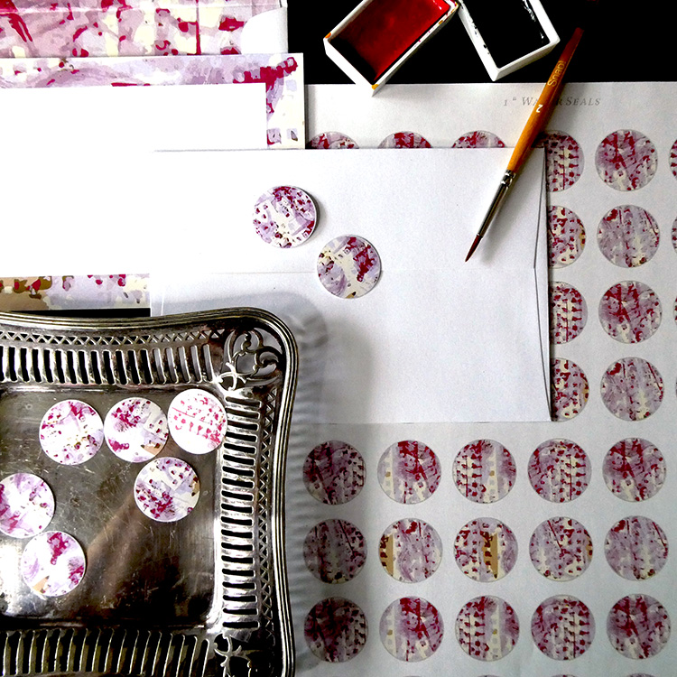 Mark making; to document, to understand, to explore, to play. And so we bring you this abstract watercolor exploring texture on wafer seals. These coordinate with matching note card sets and half sheet stationery sets. Available in three color families: Gypsy Red, Cerulean Blue, and Charcoal Grey.